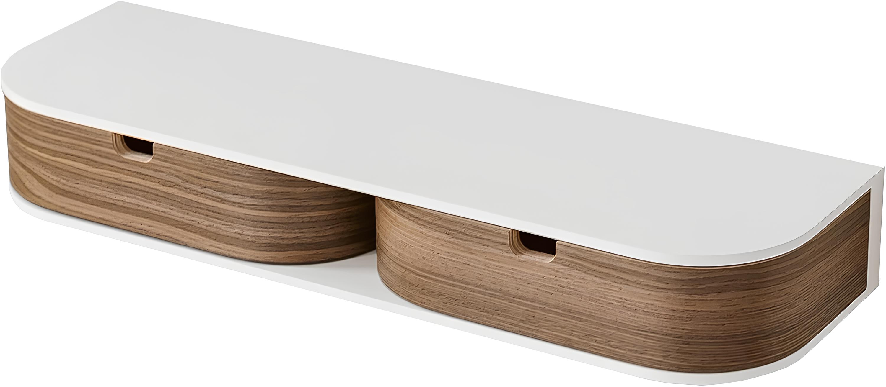 Wisząca półka ścienna drewniana Valiai z 2 szufladami (biała/orzech)