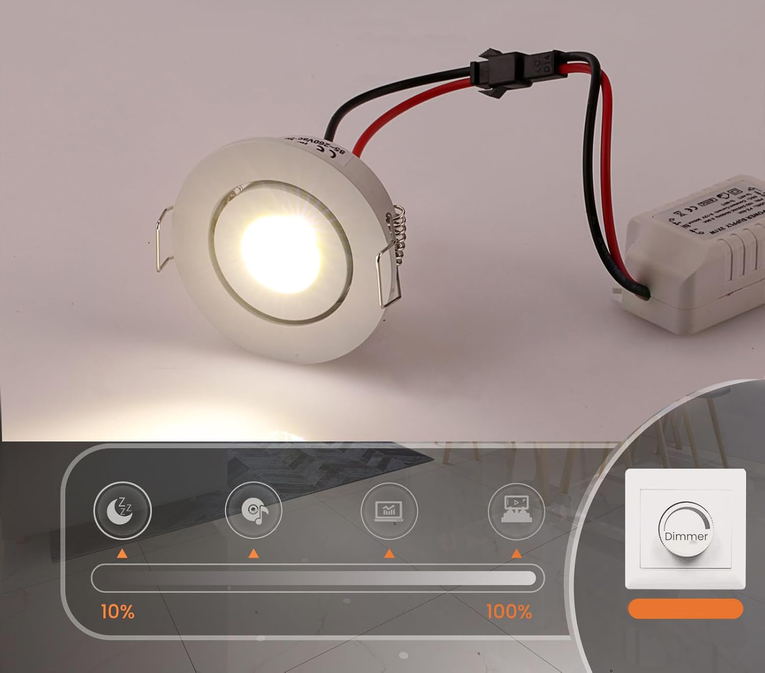 Reflektory wpuszczane mini JOYINLED 3W 3000K to ekskluzywny zestaw składający się z 10 regulowanych mini reflektorów wpuszczanych, które umożliwiają stworzenie nowoczesnego i stylowego oświetlenia wnętrz. Każdy z reflektorów ma niewielki otwór montażowy o średnicy 4,2–4,5 cm, co sprawia, że doskonale nadają się do różnych przestrzeni, zarówno w mieszkaniach, jak i biurach. System instalacji jest prosty dzięki dołączonemu zasilaczowi LED, co ułatwia montaż i pozwala na szybkie uruchomienie urządzenia.