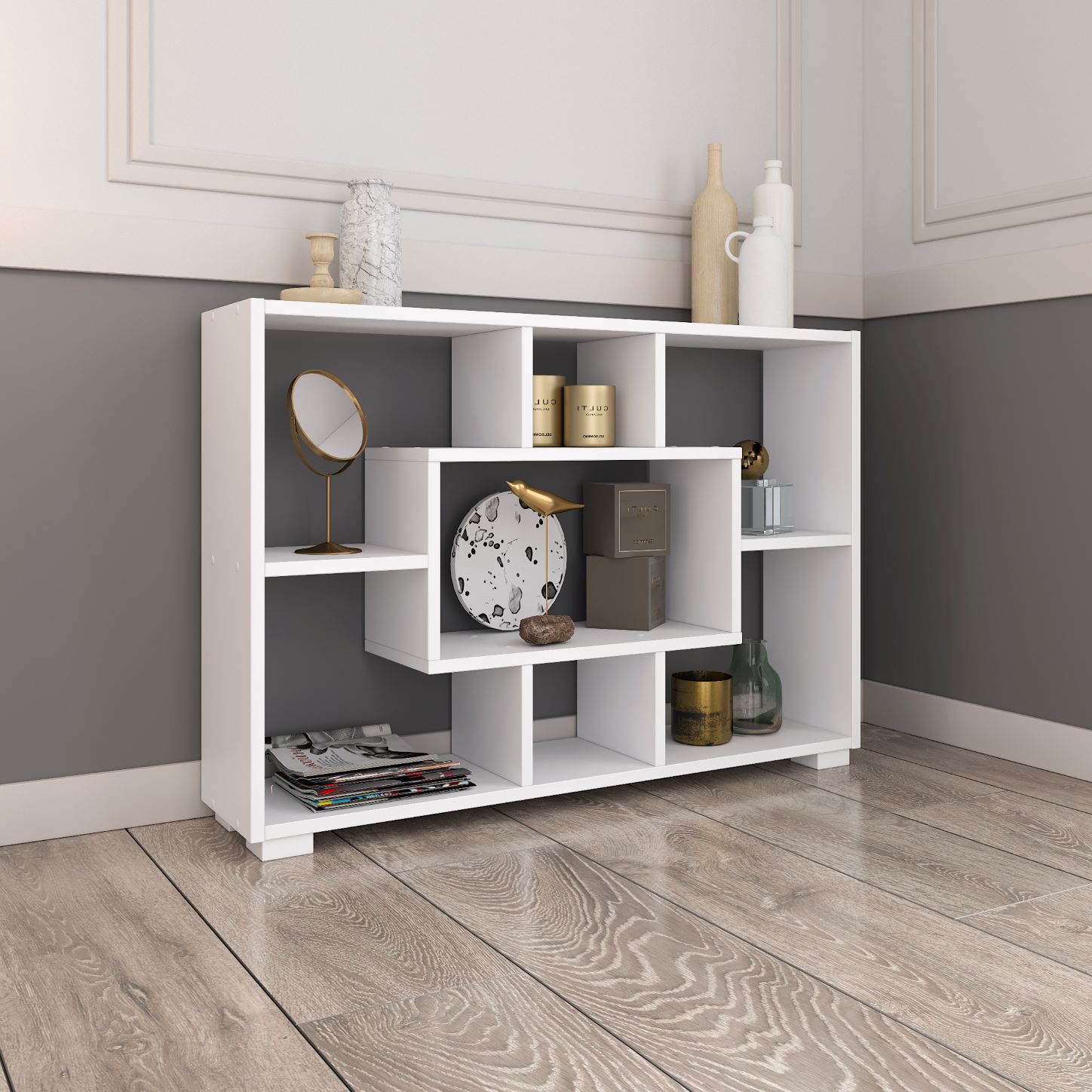 Daj się uwieść czarowi geometrii! Regały z kolekcji Split zachwycają swoim nietypowym kształtem. Znajdziesz wśród nich zgrabne regały, na których pomieścisz książki, zdjęcia, dekoracje i wiele innych rzeczy. Wybieraj spośród kombinacji kolorów białych, czarnych oraz dębowych. Dzięki zastosowaniu w tym produkcie płyty wiórowej zamiast wyłącznie litego drewna, produkcja każdego produktu potrzebuje mniej drewna. W ten sposób lepiej dbamy o środowisko.