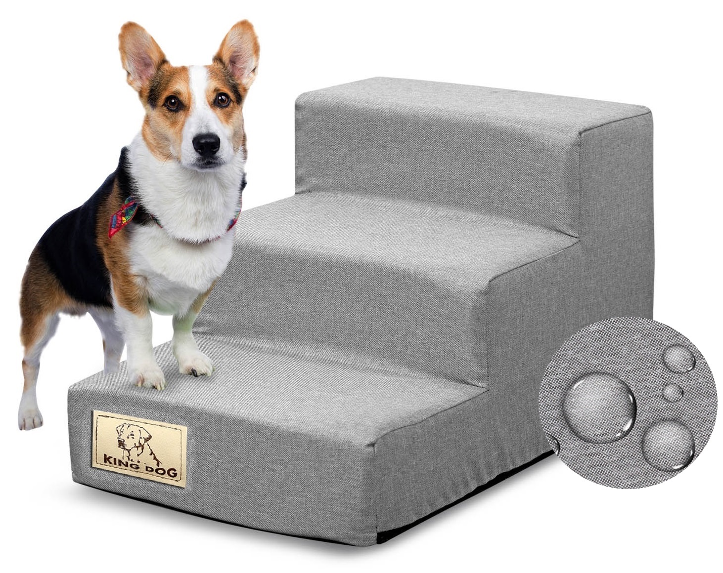 SCHODKI dla psa z naszywką KINGDOG wodoodporne w kolorze szarym, Zadowolenie pupila GWARANTOWANE!