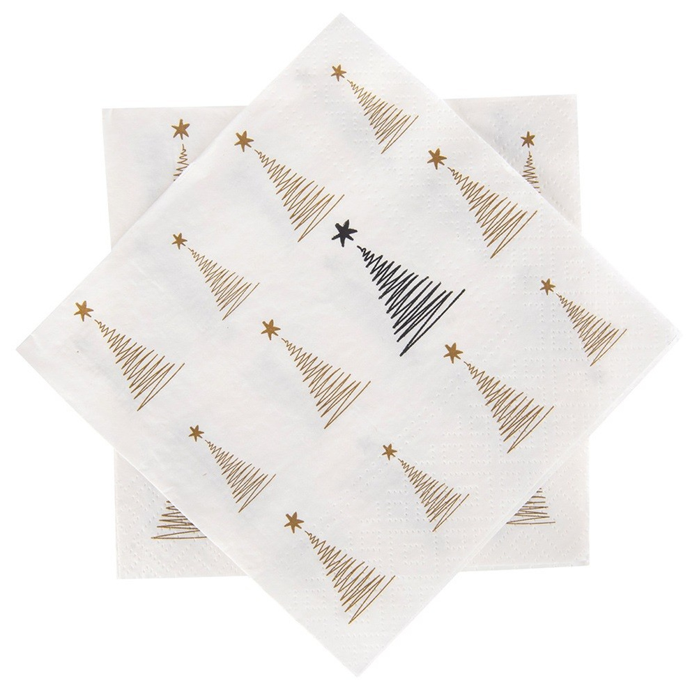 ✅ Zestaw 20 szt. serwetek - Zestaw 20 sztuk trójwarstwowych serwetek papierowych. Każda z serwetek ma wymiary po rozłożeniu 33 x 33 cm, a przed rozłożeniem 16,5 x 16,5 cm. ✅ Świąteczny motyw choinki - Wykonane z papieru w kolorze białym z…