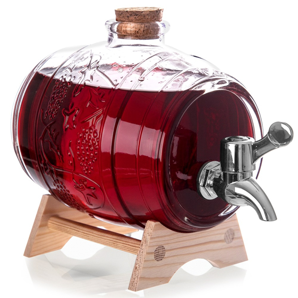 ✅ Słój z kranikiem do napojów - Dystrybutor do napojów z kranikiem o pojemności 1 l w zestawie ze stojakiem. Idealny do serwowania lemoniady w gorące dni, ponczu lub lemoniady, soku podczas imprezy, a także whisky. Słój ma efektowny kształt beczki…