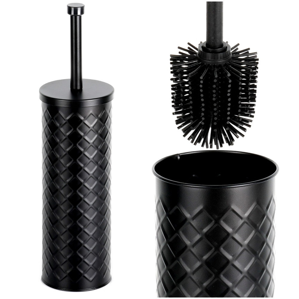 Szczotka do toalety ze stojakiem metalowa czarna 38x10 cm
