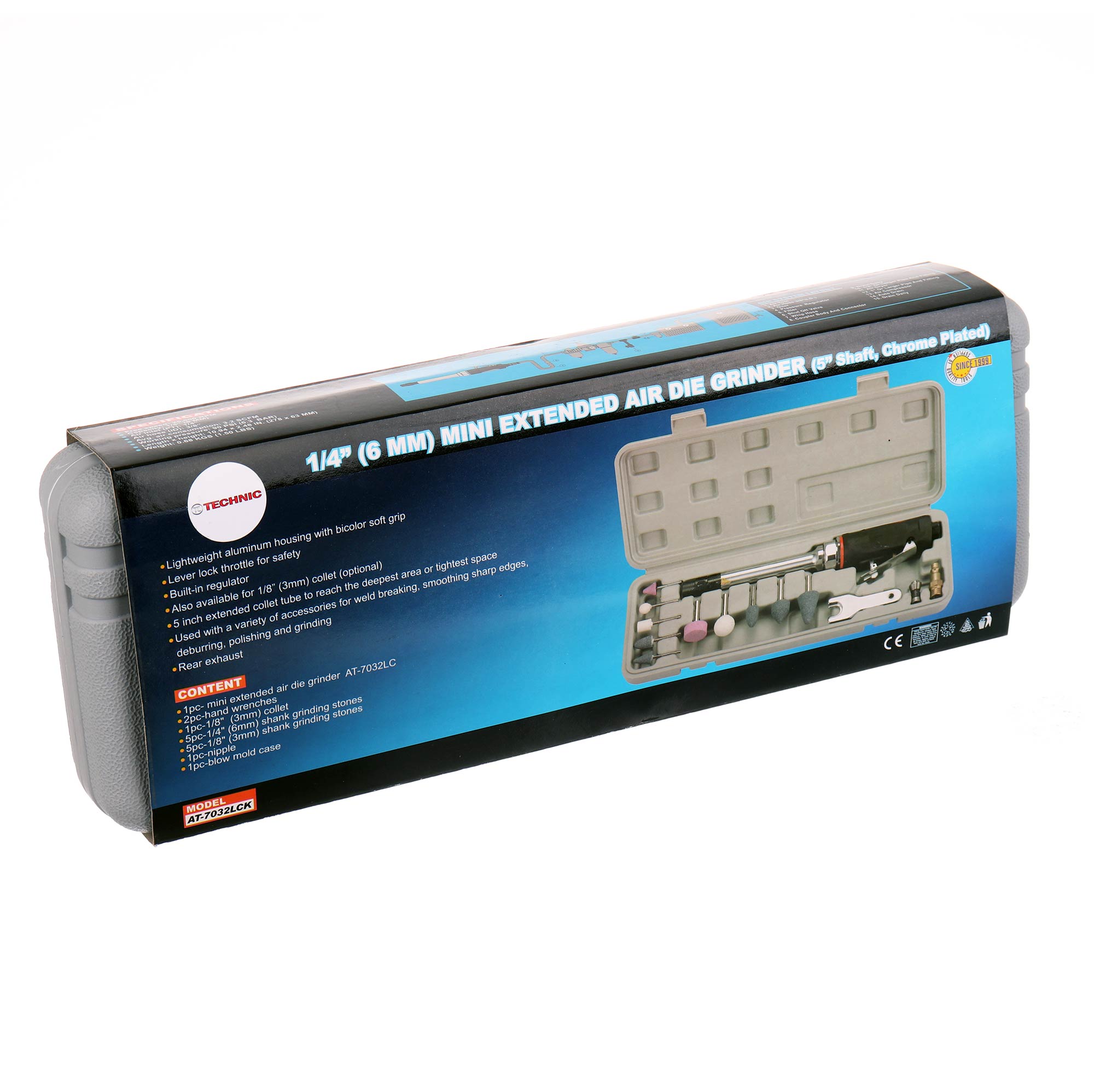 Szlifierka pneumatyczna trzpieniowa prosta AT-7032LCK | 280mm | W zestawie walizka + akcesoria