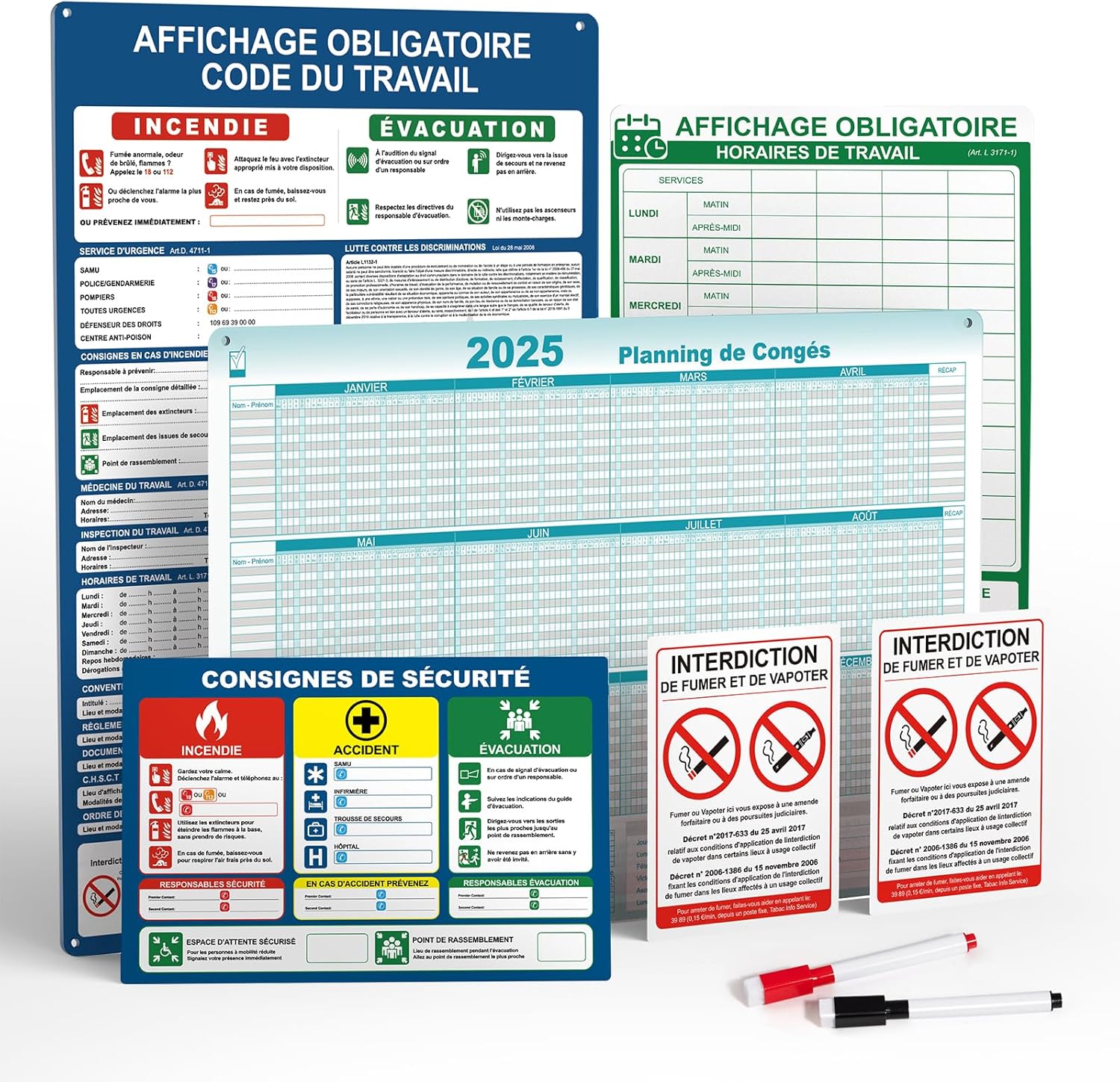 Tablice informacyjne obowiązkowe PVC zmywalne 8szt zestaw montażowy