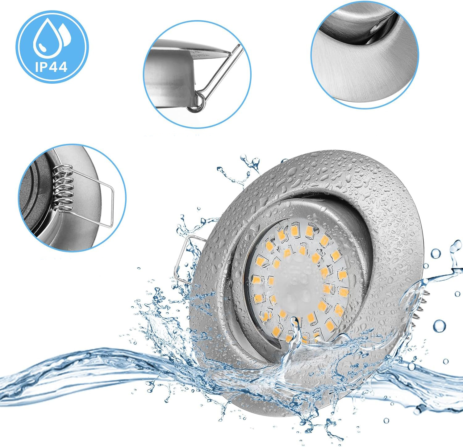 Reflektory są wodoodporne (IP44) i wykonane z grubej odlewanej aluminiowej obudowy, co zapewnia doskonałą ochronę przed korozją i utlenianiem. Dzięki temu świetnie sprawdzą się w miejscach o podwyższonej wilgotności, takich jak łazienki, kuchnie czy przestrzenie komercyjne. Dodatkowo, wydajność energetyczna tych ledowych reflektorów sprawia, że są one alternatywą o mocą 6 W, która zastępuje tradycyjne żarówki halogenowe o mocy 60 W, co umożliwia zaoszczędzenie ponad 90% kosztów energii elektrycznej. Idealne do nowoczesnych mieszkań i biur, te reflektory zapewnią długotrwałe i wydajne oświetlenie.