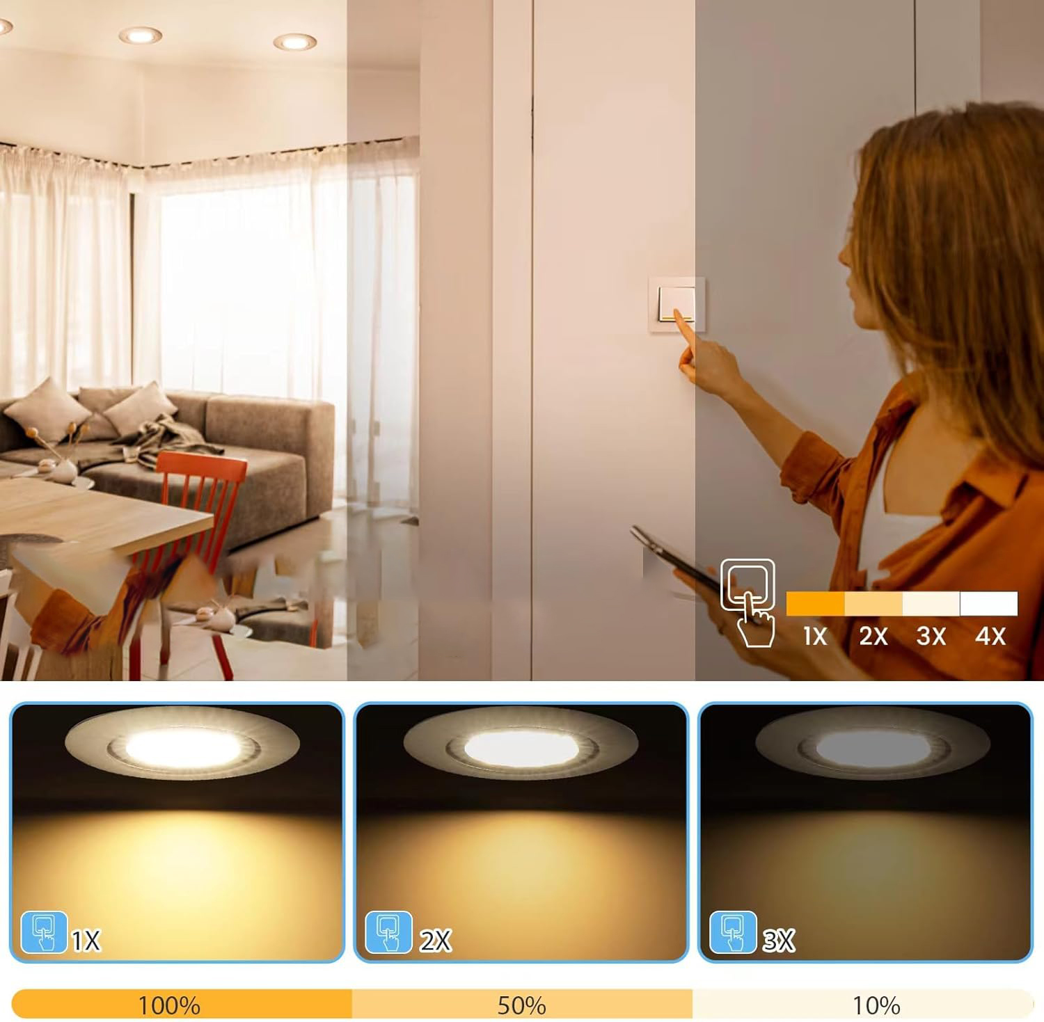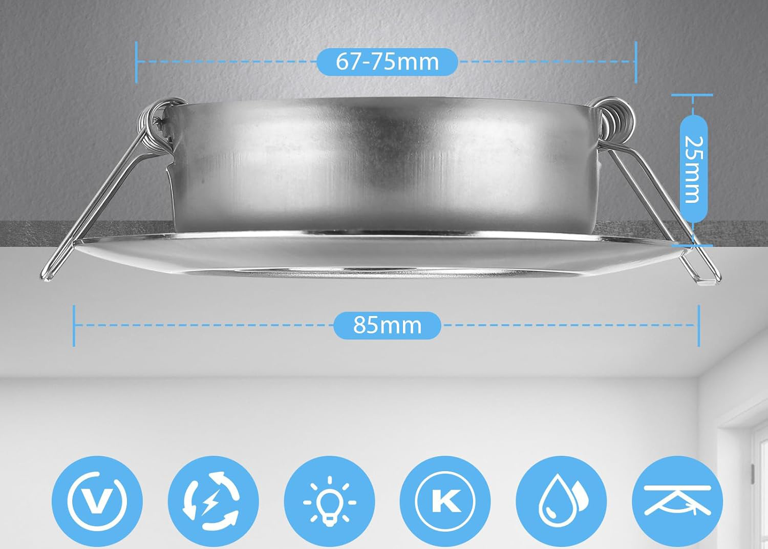 Te dimmerowalne reflektory LED pozwalają na dostosowanie jasności do nastroju w pomieszczeniu dzięki trzem poziomom regulacji: 100% (500 lm), 50% (300 lm), 10% (95 lm). Bez migotania i szumów, oświetlenie tworzy przyjazną atmosferę, co sprawia, że jest idealne do sypialni, salonu czy łazienki. Dodatkowo, ich prosta instalacja, dzięki niewielkiej głębokości montażowej wynoszącej tylko 25 mm, sprawia, że można je łatwo zamontować w nowych oraz istniejących aranżacjach.