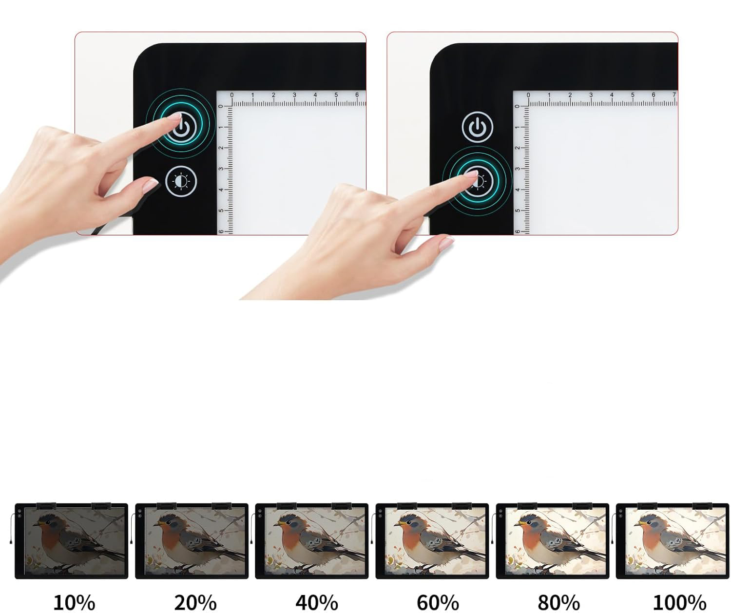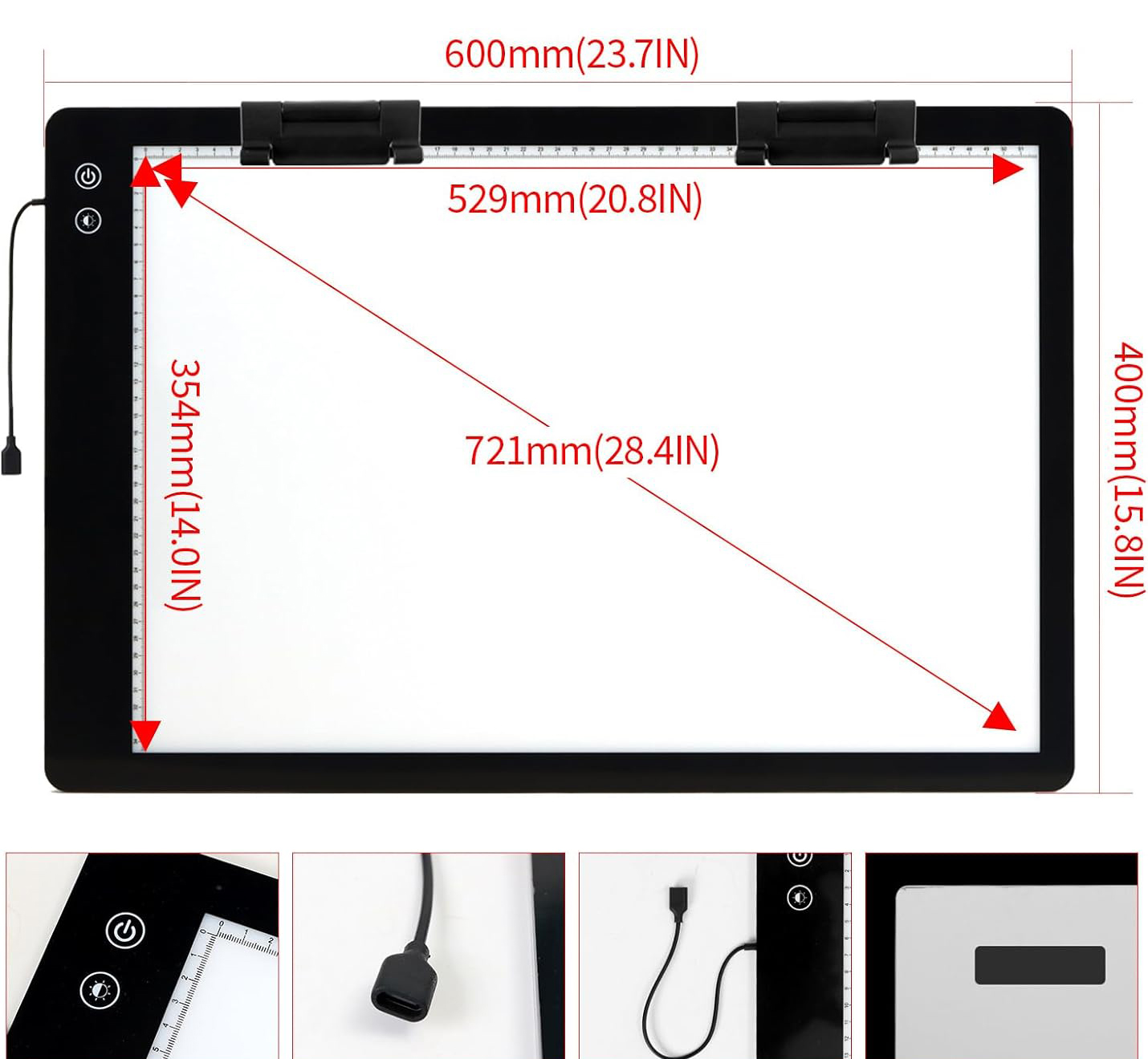 Nie tylko ergonomiczny design sprawia, że ten stół do rysowania jest niezwykle funkcjonalny. Jego duża powierzchnia robocza o wymiarach 60 cm x 40 cm (23.7 x 15.8 cali) oraz rzeczywista przestrzeń robocza wynosząca 52.9 cm x 35.4 cm (20.8 x 14.0 cali) pozwala na swobodne tworzenie skomplikowanych projektów artystycznych. Niezależnie od tego, czy tworzysz rysunki, czy pracujesz nad bardziej złożonymi projektami, taki rozmiar zapewnia Ci wystarczająco dużo miejsca na wszystkie Twoje pomysły. Dzięki temu, że stół jest baterii akumulatorowej, możesz go z łatwością przemieszczać tam, gdzie go potrzebujesz, nie martwiąc się o dostęp do gniazdka elektrycznego.