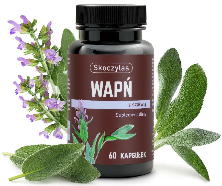 Węglan wapnia (wapń), kapsułka (substancja glazurująca: hydroksypropylometyloceluloza), ekstrakt z liści szałwii lekarskiej (Salvia officinalis L.)