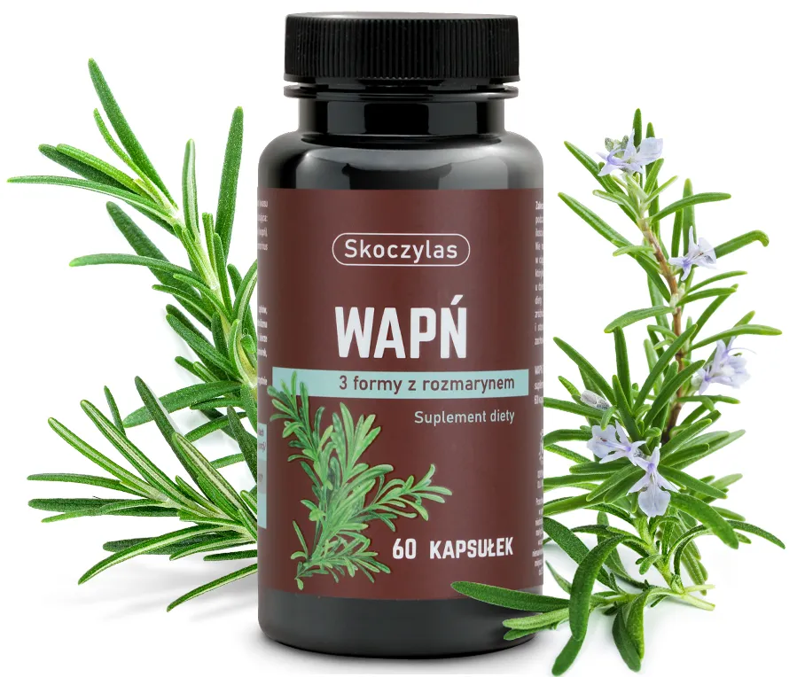 Węglan wapnia (wapń), sole wapniowe kwasu cytrynowego (wapń), kapsułka (substancja glazurująca: hydroksypropylometyloceluloza), mleczan wapnia (wapń), ekstrakt z liści rozmarynu lekarskiego (Rosmarinus officinalis L.).