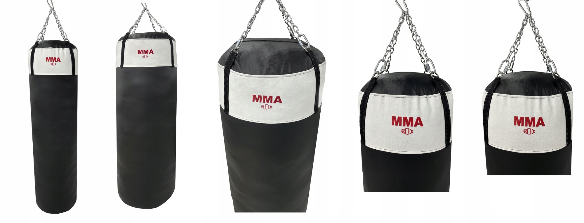 Górna część worka wzmocniona pasem usztywniającym i najwyższej jakości taśmami nośnymi. Pas wzmacniający wszyty w górnej części worka ma na celu podtrzymywanie pasów nośnych, do których przymocowane są metalowe łańcuchy (dołączone do zestawu).