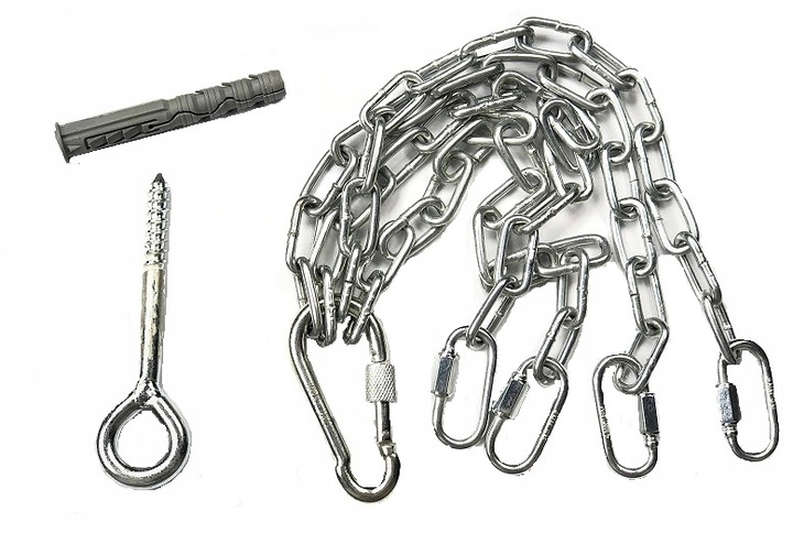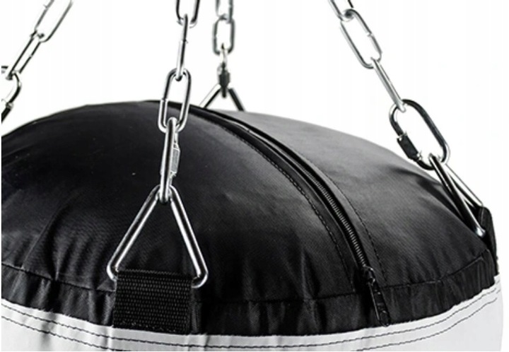 Górna część worka wzmocniona pasem usztywniającym i najwyższej jakości taśmami nośnymi. Pas wzmacniający wszyty w górnej części worka ma na celu podtrzymywanie pasów nośnych, do których przymocowane są metalowe łańcuchy (dołączone do zestawu).
