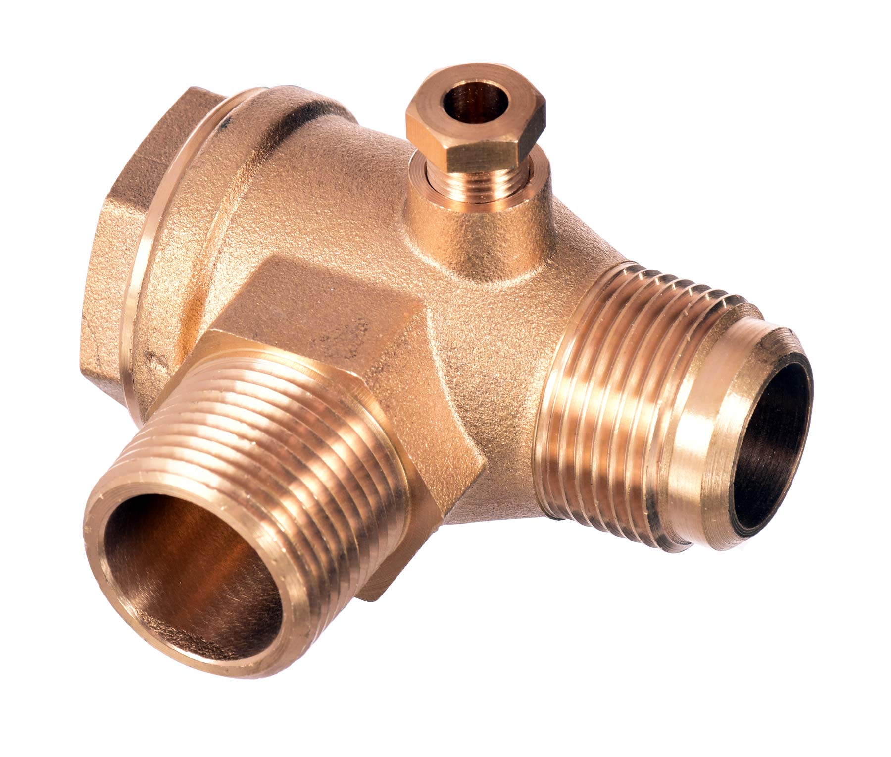 Zawór zwrotny z gwintami 3/4"Z x 3/4" Z , znajdujący zastosowanie w kompresorach, zabezpiecza przed cofaniem się z butli wcześniej wtłoczonego powietrza.