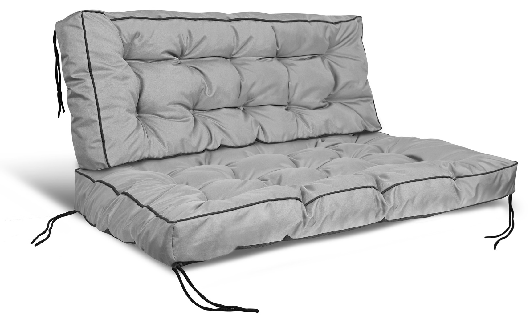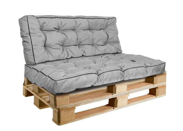 2 Wodoodporne poduszki Z WYSOKIM BOKIEM I LAMÓWKĄ oparcie + siedzisko na ławkę z EUROPALET w kolorze szarym, WYGODA i zadowolenie gwarantowane!