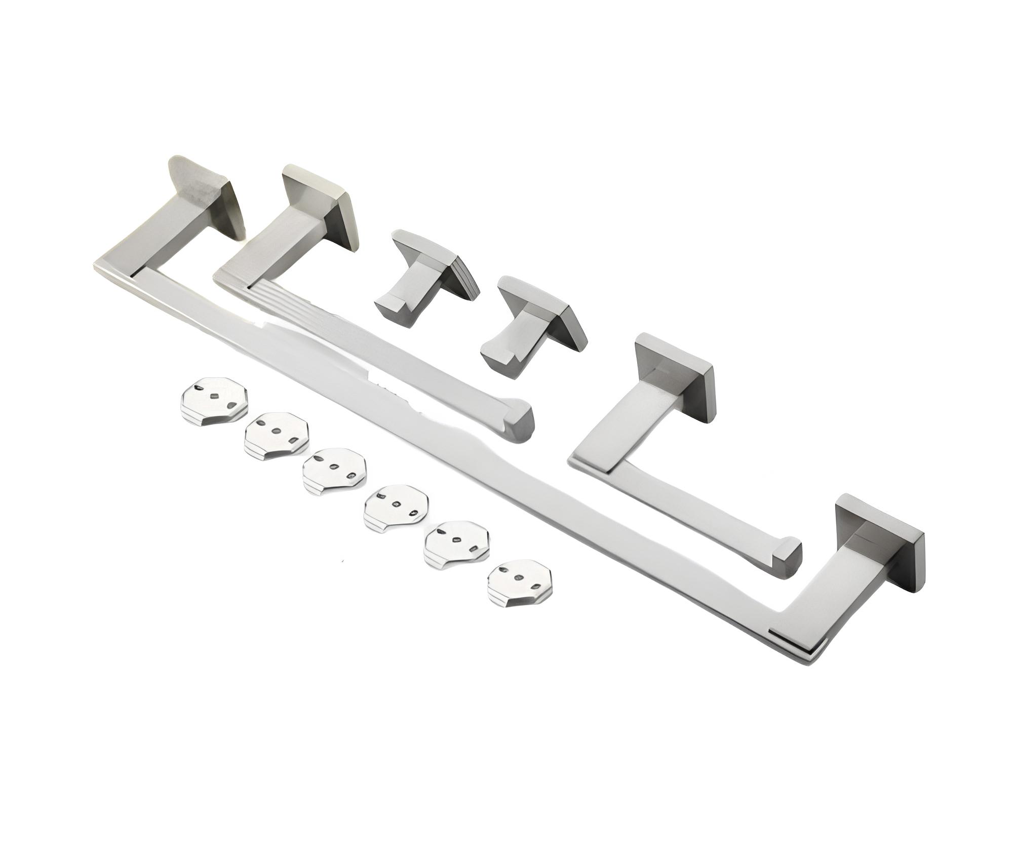 5-częściowy zestaw akcesoriów łazienkowych W zestawie wieszak na ręczniki uchwyt na ręczniki Uchwyt na papier toaletowy Haczyki ścienne Nikiel szczotkowany Stal nierdzewna Informacje o tej pozycji:Stal nierdzewnaOdporny…